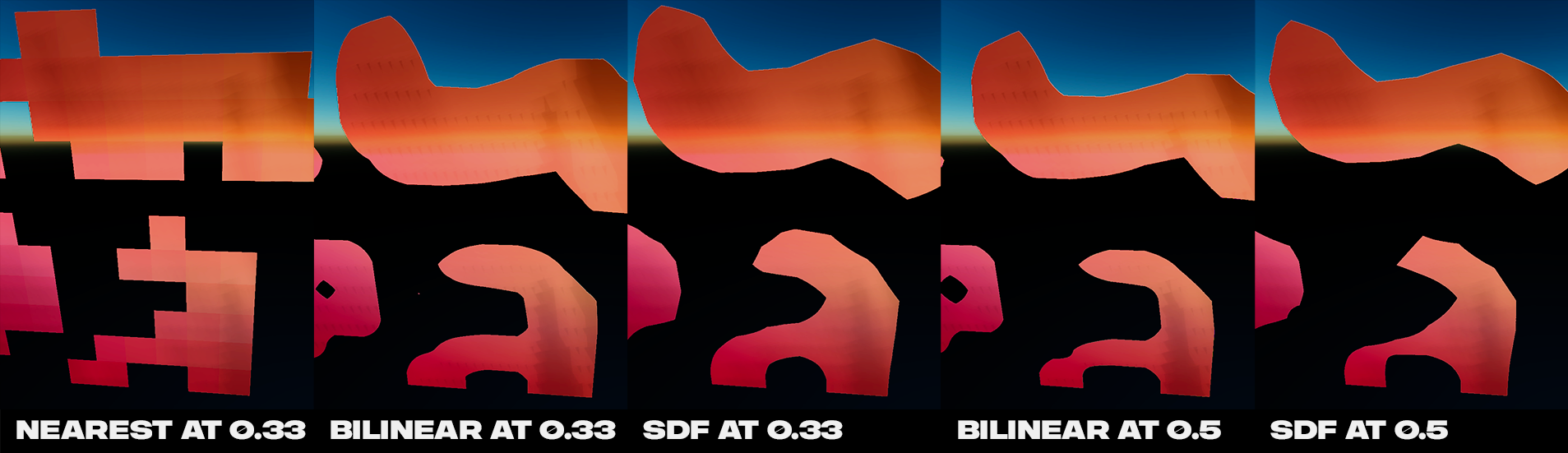 Now, after we've rendered all of our usual suspects, we apply regular deferred shading & GI to them. The resulting texture is then blit to a lower resolution & quality texture, and blurred mips are computed.