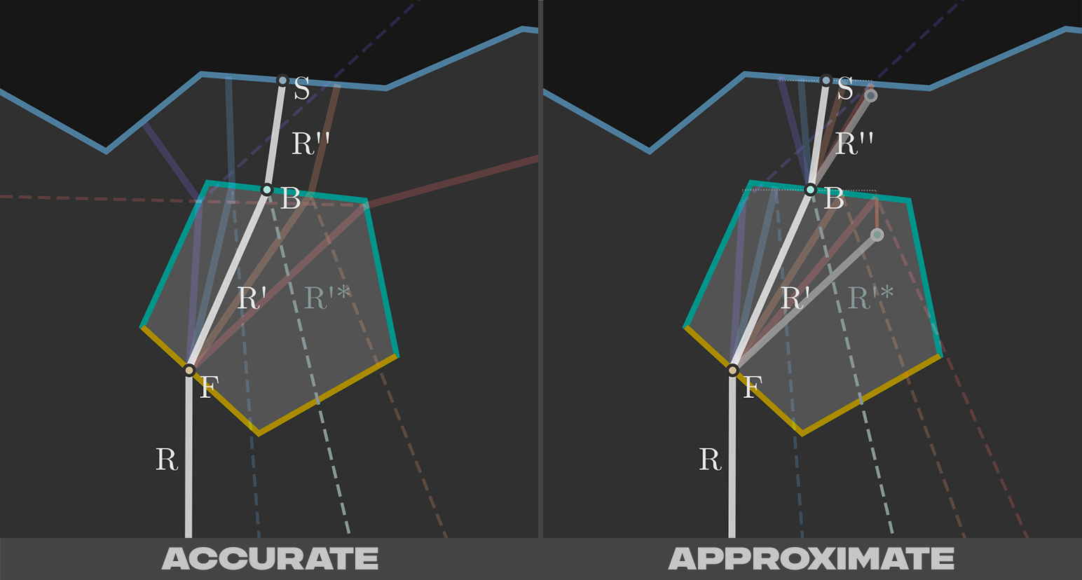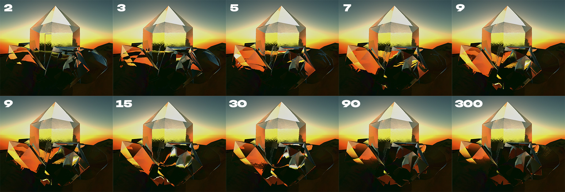 Now, simply summing up the traced (and re-traced) scene for those N IORs (for which we'd each apply the pre-calculated tint) is obviously very expensive - but it'll generate quite an accurate & nice looking result.