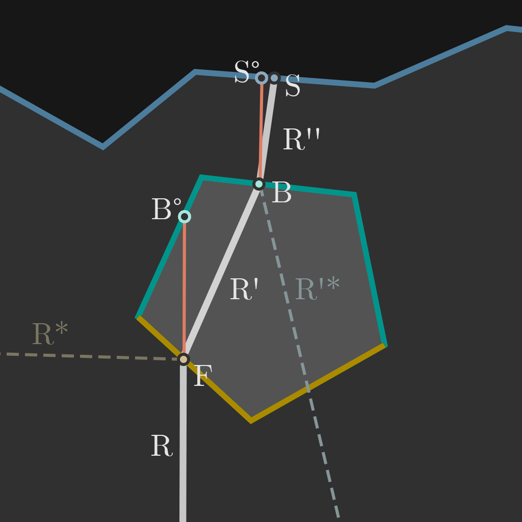 Now, our goal is to eventually sum up all the blended refractions & inner reflections and tint them in the color that corresponds to the deviated IOR value. Let's first focus on the inner reflections: If we assume that the on-screen span of the IOR-range will be linear, we can simply read from (N-1)/2 positions between the center and each boundary, calculate the normal there (just like we did for the non-dispersed version, by simply checking the neighboring depth values and resurrecting an approximated normal that way), calculate the reflected direction with this normal and the direction resulting from initial refraction using the corresponding IOR.