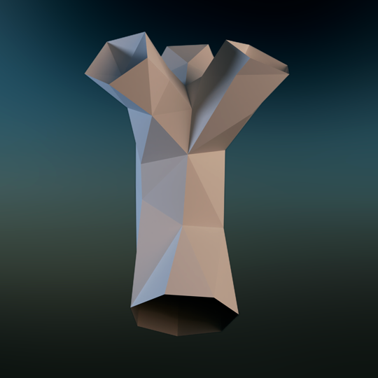 Let's assume, that tree segments are small meshes with multiple openings in the shape of a regular polygon (but with a varying amount of vertices), just like this one: