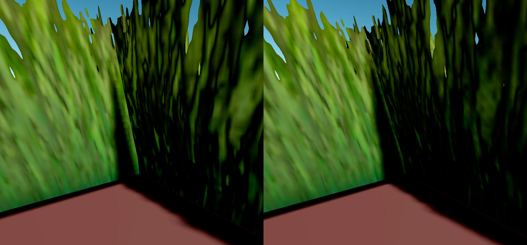 This doesn't cover chunks yet, that are further off in the distance, but depending on how well we can tune the shaders later on, we might be able to either render billboards with large amounts of grass, or even fake the existence of grass entirely with a decent grass-landscape texture.